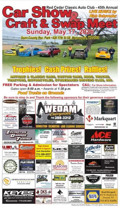 Join us for the 45th Annual Red Cedar Classic Auto Club Car Show & Craft & Swap Meet!