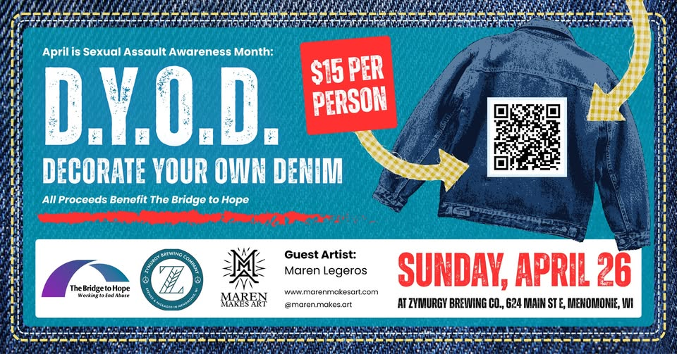 Join The Bridge to Hope at Zymurgy Brewing Co. in Menomonie for a Sexual Assault Awareness Month fundraiser centered on creativity, community, and support.