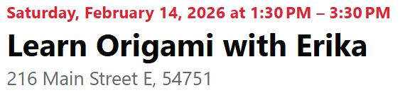 Learn Origami with Erika at Dragon Tale Books - February 14th